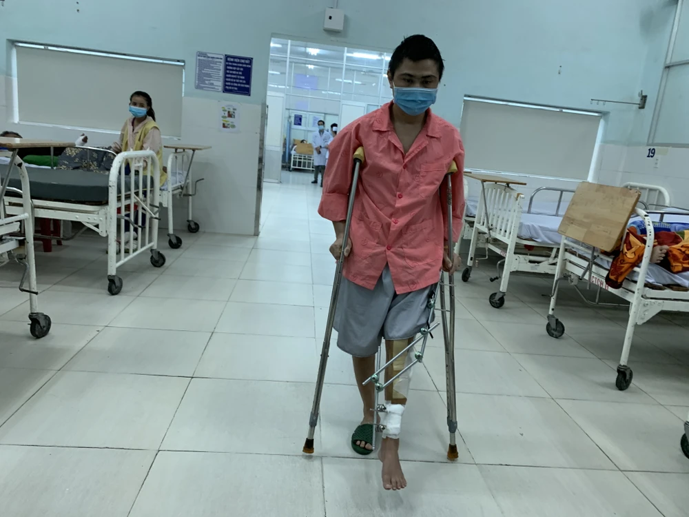 Hiện tại, bệnh nhân vẫn còn dùng nạng hỗ trợ nhưng dự kiến có thể đi lại bình thường, tuy nhiên do khớp gối cũng bị cắt nên bệnh nhân sẽ không phục hồi vận động được khớp gối.