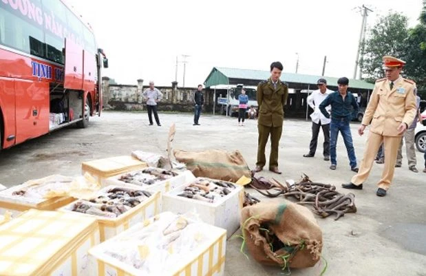 Trước đó, khoảng 9 giờ sáng 4-1, xe khách biển số 37B-005.33 chạy tuyến Nghệ An-TP.HCM, chở số tang vật trên chạy trên quốc lộ 1A (thuộc địa phận xã Kỳ Thọ, huyện Kỳ Anh, Hà Tĩnh) thì bị Đội CSGT 6-1 thuộc Phòng CSGT Công an tỉnh Hà Tĩnh phát hiện, bắt giữ.