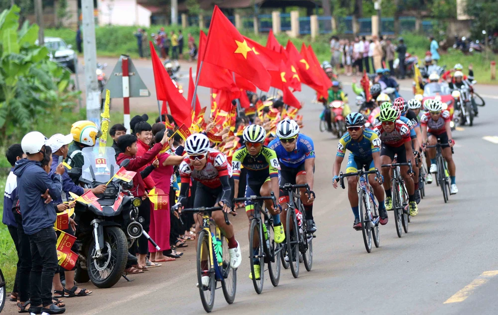 Sáng 14-9, các tay đua thi đấu chặng 12, dài 51 km vòng quanh TP Buôn Ma Thuột.