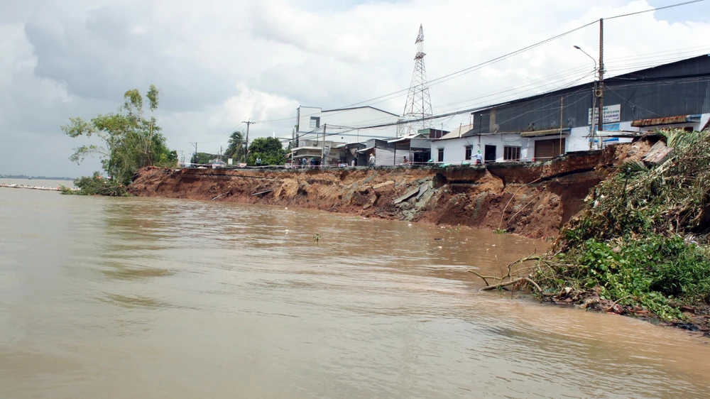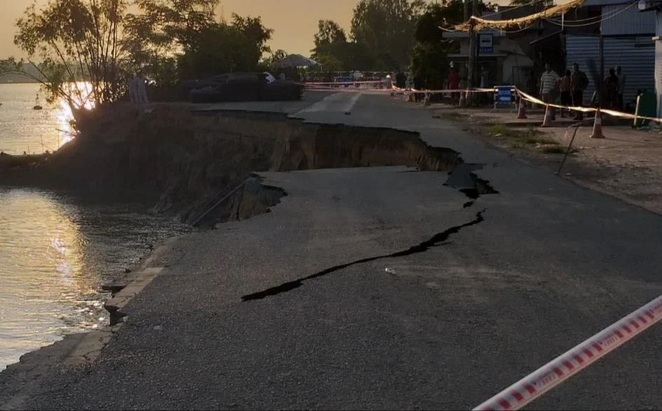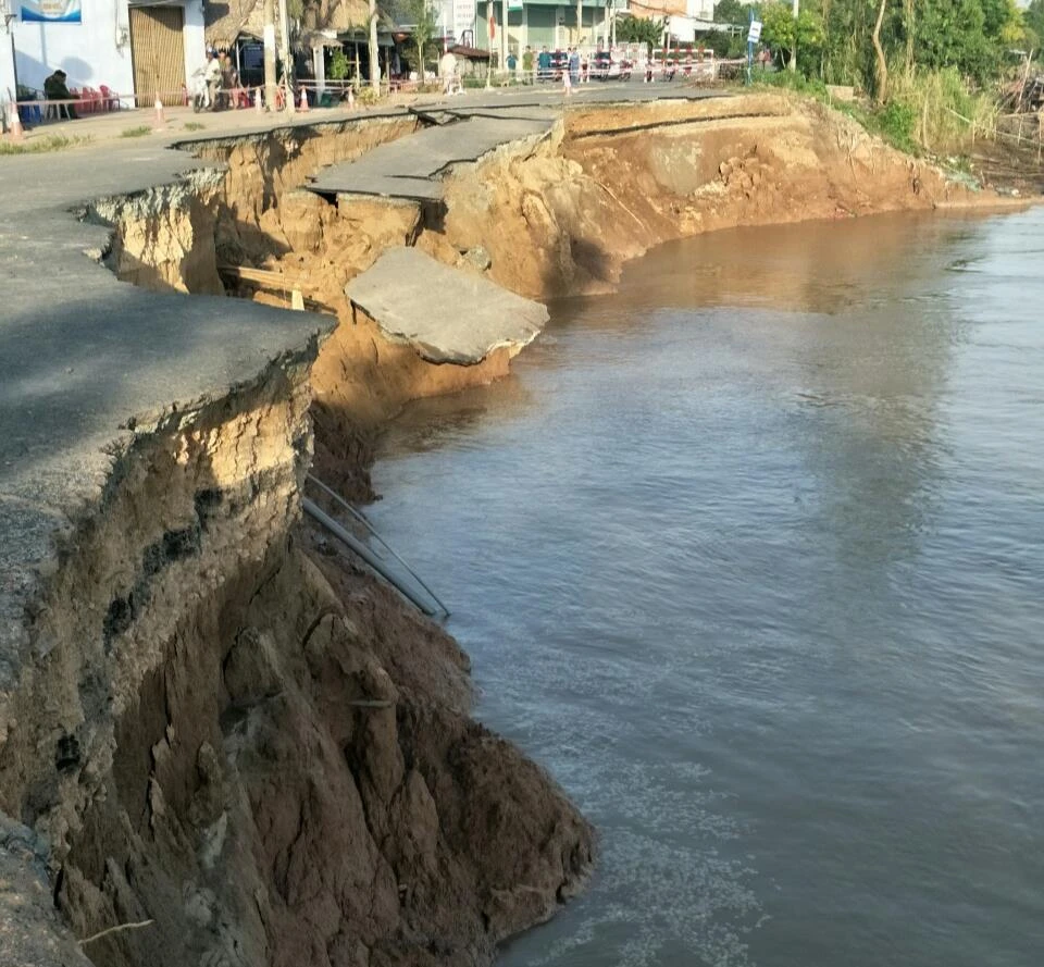 Gần như toàn bộ mặt QL91 bị trôi xuống sông Hậu