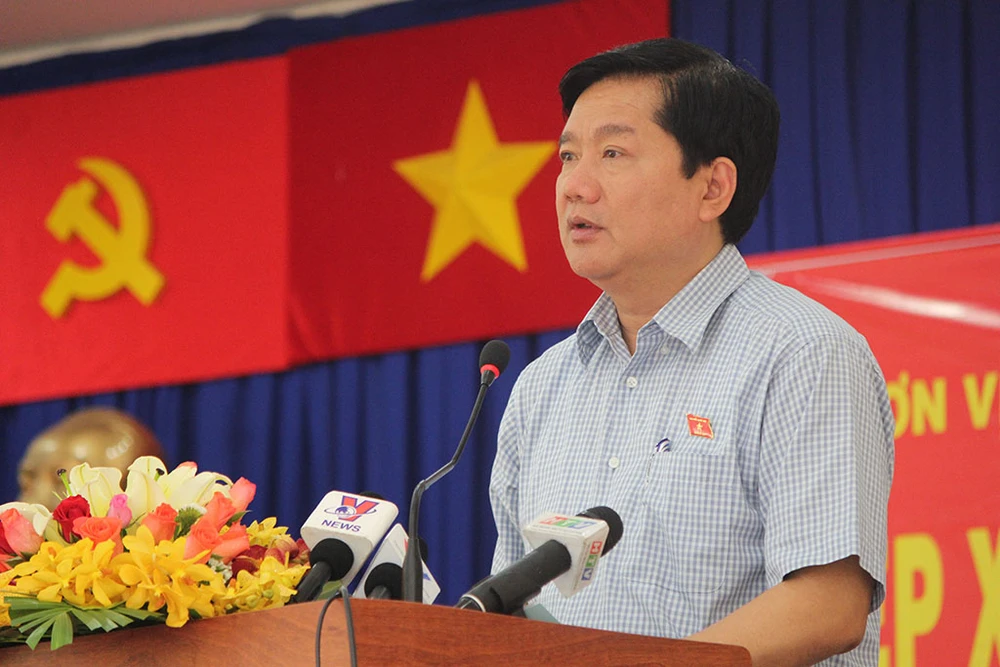 Bí thư Thành ủy TP Đinh La Thăng đề nghị lãnh đạo, Công an huyện Hóc Môn xem xét đề nghị của cử tri Trần Văn Xê. Ảnh: HOÀNG GIANG