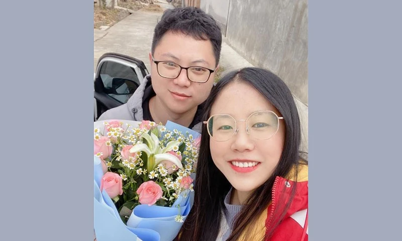 Zhao Xiaoqing chụp hình cùng người yêu, anh Zhao Fei. Ảnh: THỜI BÁO HOÀN CẦU
