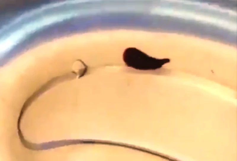 Khi khám, các BS đã xác định có dị vật bên trong mũi nên đã dùng phương pháp nội soi phát hiện có con vắt sống ký sinh trong mũi chị T. Các y, BS đã nội soi gắp ra từ mũi chị T. một con vắt dài khoảng hơn 5cm.
