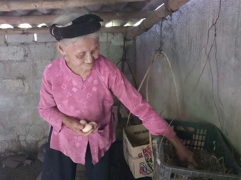 Trong căn nhà cấp bốn hai gian, cụ Mơ kể lại hành trình xin thoát nghèo của mình suốt hơn một năm qua bằng giọng thuần địa phương: “Tôi năm nay là 84 (tuổi) nhưng tôi thấy rằng những người già khỏe mạnh chỉ có nhác (lười) thì mới nghèo. Như nhà tôi đây, vườn tược như ni mà nghèo thì con cái, xã hội người ta cười cho.