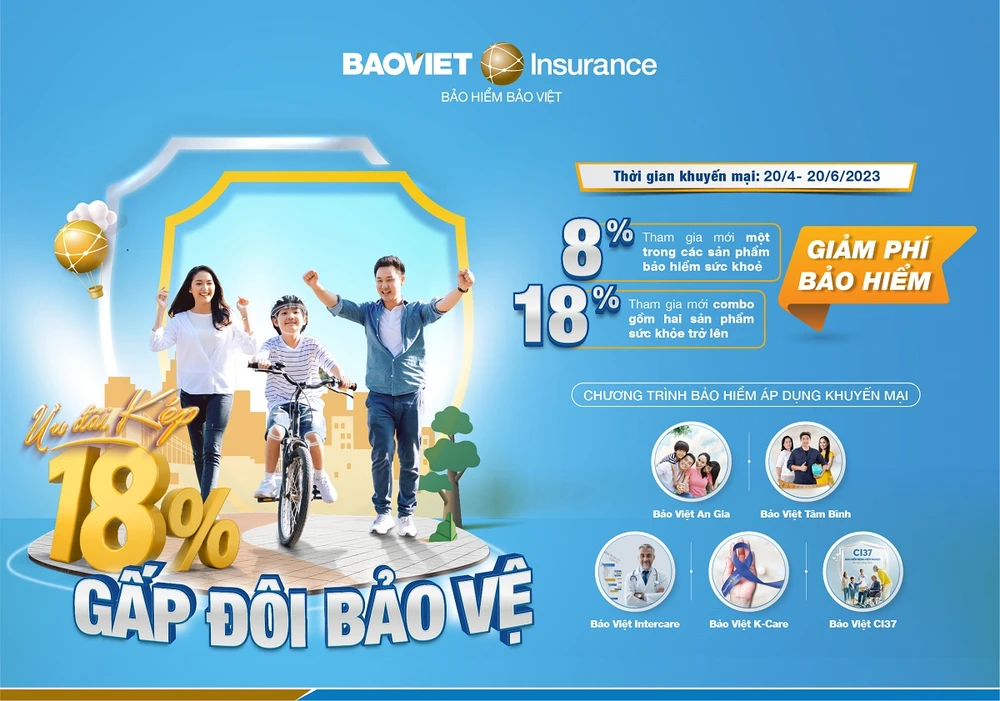 Việc chủ động chăm sóc sức khỏe và sức khoẻ tài chính là xu hướng cuộc sống văn minh hiện nay, “vòng tay vững chãi” bảo vệ toàn được ví như một diện và mang lại hạnh phúc trọn vẹn cho mỗi người. Hưởng ứng chủ đề sức khỏe thế giới, Bảo hiểm Bảo Việt triển khai chương trình ưu đãi bảo hiểm sức khoẻ “Ưu đãi kép, Gấp đôi bảo vệ” duy nhất trong thời gian từ ngày 20-4 đến 20-6-2023 dành cho khách hàng cá nhân và hộ gia đình tham gia mới hoặc đã tham gia trước đó nhưng gián đoạn trên một năm.