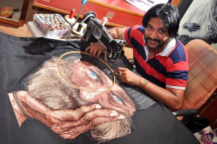 “Tôi đã biết thêu thùa cách đây 23 năm, khi tôi chỉ mới là đứa trẻ 12 tuổi. Sau khi cha tôi mất, tôi phải bỏ dở công việc để về chăm sóc cửa hàng may của cha. Tôi thêu khá giỏi nên tôi đã kết hợp nó với đam mê vẽ tranh của mình. Tôi không muốn mình cứ mãi là một thợ may, tôi muốn người khác biết đến tôi hay chí ít hơn là kiếm được nhiều tiền lo cho gia đình" - chàng nghệ sĩ 35 tuổi nói với tờ DNA India.