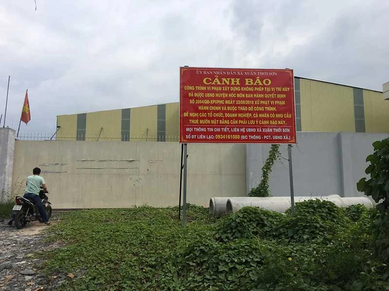 Khi công trình xây gần hoàn thiện thì bị UBND xã Xuân Thới Sơn lập biên bản vi phạm hành chính về vi phạm trong hoạt động xây dựng. Sau đó, UBND huyện Hóc Môn ban hành quyết định xử phạt 15 triệu đồng và buộc tháo dỡ công trình. Việc xử phạt này được huyện Hóc Môn căn cứ theo Điều 15 Nghị định 139/2017 về xử phạt vi phạm hành chính trong lĩnh vực xây dựng. Cụ thể là hành vi tổ chức thi công xây dựng công trình không có GPXD mà theo quy định phải có giấy GPXD”.