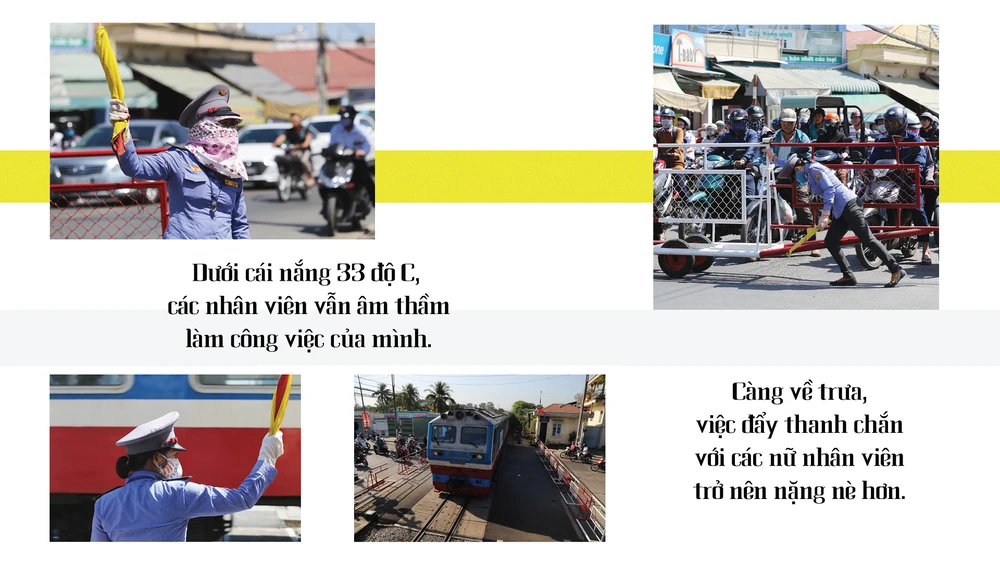 Khoảng chừng 15 phút lại có một chuyến tàu qua. Công việc của hai chị tuần hoàn lặp đi, lặp lại như vậy. Chỉ có mặt trời càng lên cao, hơi nóng hầm hập như muốn nướng chín tất cả.