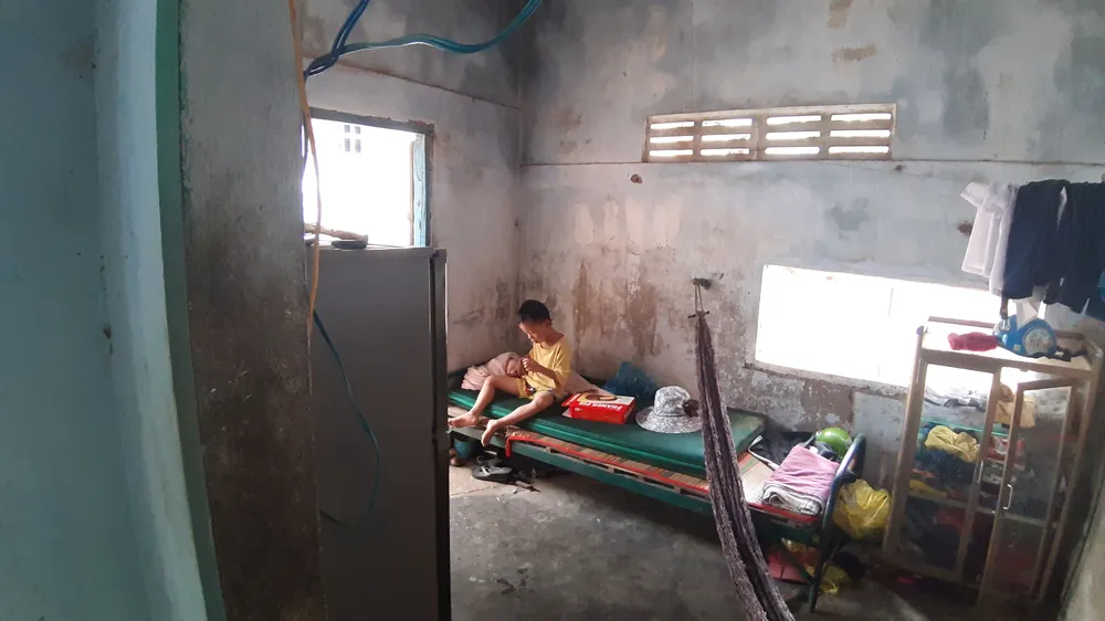 Anh Phiên - cha cặp song sinh Phi Long - Phi Phụng lòng như ngổn ngang trăm mối với cảnh nhà. Ảnh: NÚI XANH