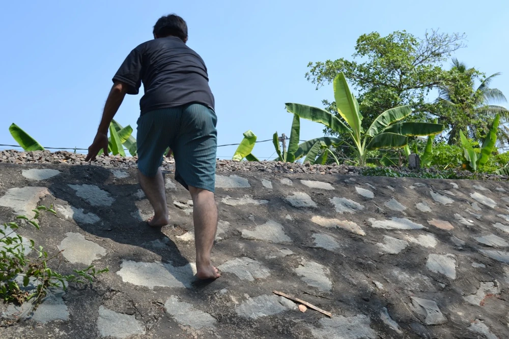 Ông Sơn kể lại sự việc cầu sập và báo tin để dừng tàu. Ảnh: TIẾN DŨNG