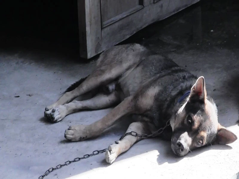 Ông H. bị trộm mất 2 con chó vào rạng sáng ngày 26-6. Ảnh Nguyễn Tân.