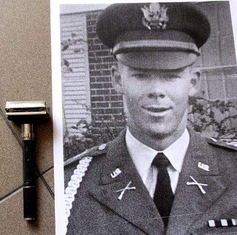 Di ảnh Wiliam Kimball và kỷ vật, con dao cạo râu mà ông Thà vẫn giữ 47 năm nay.