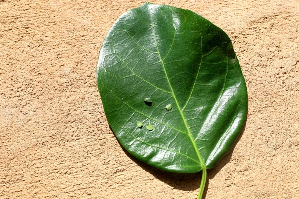 Lá cây sam hương bình thường và chiếc lá được thu nhỏ nằm trong lòng lá. Ảnh: CÔNG THI