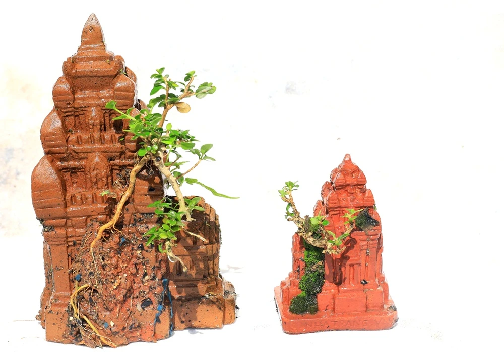 Ông Phúng cho biết, ông trồng cây sam hương siêu mimi này vào bất kể vật dụng nào có thể như mô hình siêu xe ô tô, mô tô, con ốc, vỏ sò… đặc biệt những vật dụng ghi lại thời khắc của lịch sử thế giới và Việt Nam như xe tăng, ô tô, xe cổ, mô hình lịch sử lâu đời…