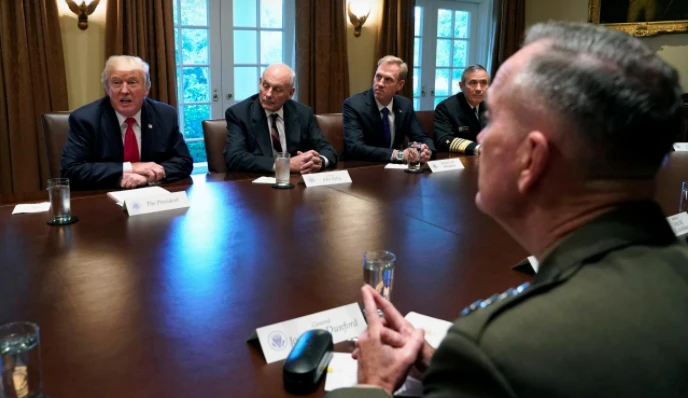 Nhiều vị trí cấp cao trong chính phủ được ông Trump chọn từ hàng ngũ tướng lĩnh. Như tướng về hưu John Kelly ban đầu được chọn vào vị trí Bộ trưởng An ninh nội địa, sau đó được chuyển sang làm Chánh Văn phòng Nhà Trắng thay ông Reince Priebus. Tướng H.R. McMaster được chọn là Cố vấn An ninh Quốc gia. Cả hai nhân vật này có tham gia cuộc gặp chiều 5-10. Bình thường ra vào Nhà Trắng ông McMaster mặc thường phục, nhưng trong cuộc gặp này ông đã mặc quân phục.