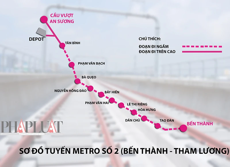 Sơ đồ tuyến metro số 2 (Bến Thành - Tham Lương). Đồ họa: VÕ NGUYÊN