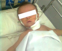 Sau nuốt trẻ ho sặc sụa, nôn ói, tím tái, người nhà phát hiện, lập tức bồng trẻ đến bệnh viện địa phương sơ cấp cứu, rồi chuyển bệnh viện Nhi Đồng 1.