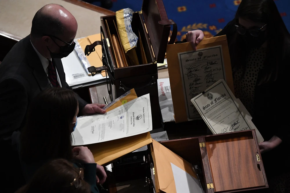 Kết quả bỏ phiếu ở Thượng viện (đảng Cộng hòa chiếm đa số): 6 thượng nghị sĩ tán thành phản đối, 93 nghị sĩ không tán thành phản đối. Kết quả bỏ phiếu ở Hạ viện (đảng Dân chủ chiếm đa số): 121 hạ nghị sĩ tán thành phản đối (toàn bộ là nghị sĩ Cộng hòa, không có nghị sĩ Dân chủ nào), 303 hạ nghị sĩ không tán thành phản đối (220 nghị sĩ Dân chủ, 83 nghị sĩ Cộng hòa), 7 hạ nghị sĩ không bỏ phiếu (2 nghị sĩ Dân chủ, 5 nghị sĩ Cộng hòa). Như vậy kết quả chung là lưỡng viện không tán thành phản đối và 11 phiếu đại cử tri bang Arizona thuộc về ông Biden được thông qua.
