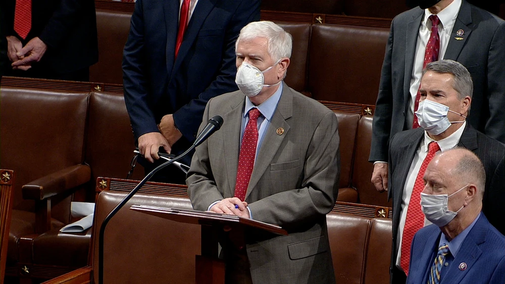 Cuộc họp được khôi phục sau khi bị gián đoạn vì người biểu tình ủng hộ Tổng thống Donald Trump kéo vào gây bạo loạn trong tòa nhà Quốc hội nhằm ngăn cản các nghị sĩ chứng nhận kết quả chiến thắng của ứng viên Dân chủ Joe Biden. Đã có 4 người chết và nhiều người bị thương trong cuộc bạo loạn này.