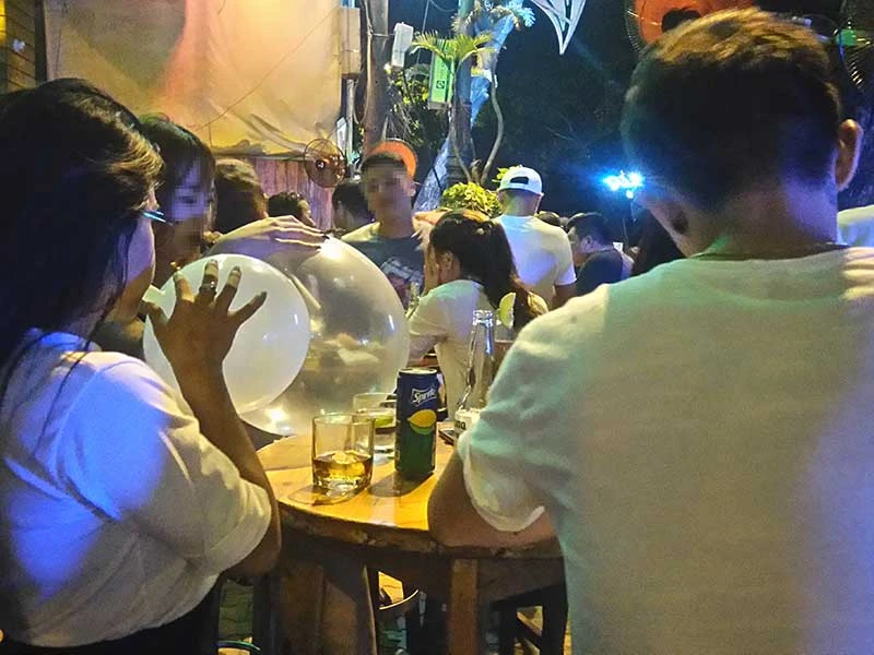 Ngày càng nhiều bạn trẻ hít bóng cười như thú vui. Ảnh: TA