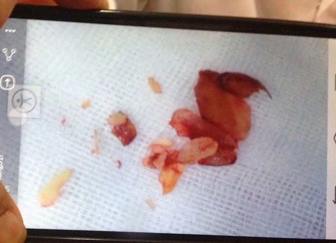 Hạt ô môi bị kẹp vỡ nát mới lấy ra được từ đường thở của bệnh nhi. Ảnh: TÙNG SƠN
