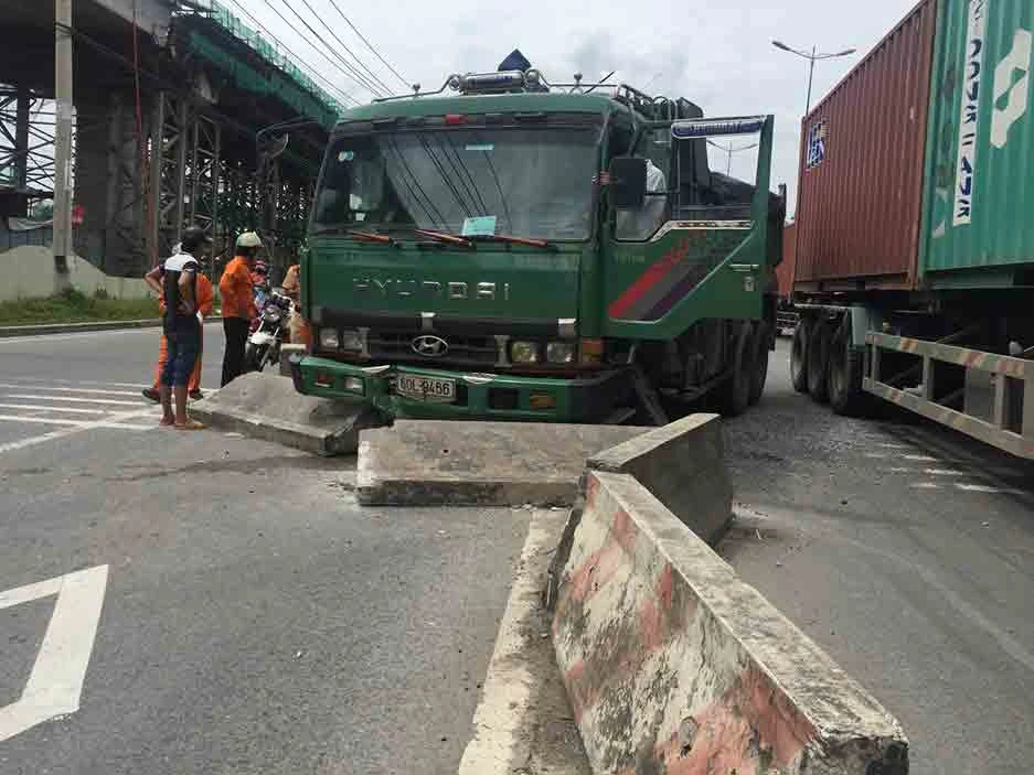 Thời điểm trên, chiếc xe ben chở đá bi mang biển số Đồng Nai chạy trên xa lộ Hà Nội hướng từ ngã tư Thủ Đức về cầu Sài Gòn. Khi đến ngã tư Bình Thái thì bất ngờ mất lái, húc văng hàng loạt dải phân cách.