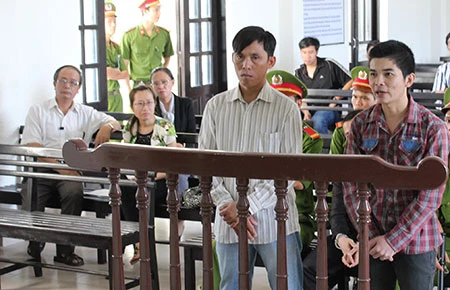 Hai bị cáo Thái (trái) và Sơn tại phiên tòa sáng 27-6. Ảnh: M.TRÂN