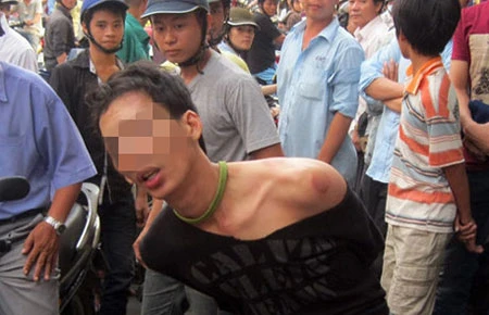 Một tên cướp bị bắt giữ trên đường phố. Ảnh: CTV