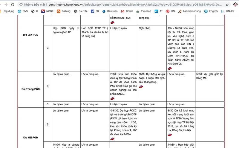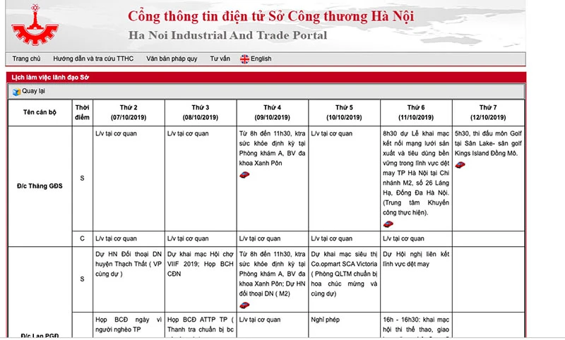 Cụ thể, sáng nay (7-10), trên cổng thông tin điện tử của Sở Công Thương TP Hà Nội (địa chỉ: www.congthuong.hanoi.gov) đã đăng tải lịch công tác tuần của lãnh đạo sở này.