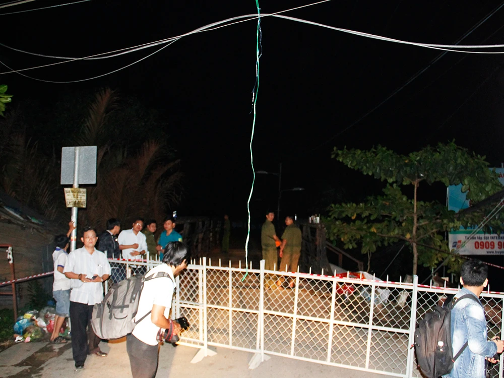 Đến rạng sáng 20-1, hiện trường vụ sập cầu Long Kiển vẫn đang được lực lượng chức năng phong tỏa hoàn toàn. Ảnh: NGUYỄN TÂN