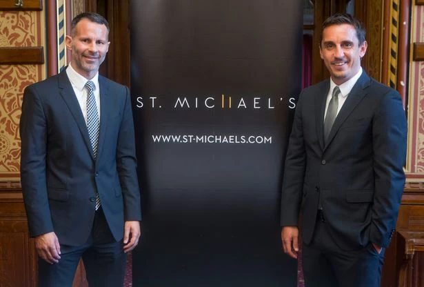 Ngôi sao Ryan Giggs (trái) và Gary Neville tiết lộ kế hoạch triệu bảng Anh của họ để xây dựng hai tòa nhà chọc trời mới ở trung tâm Manchester gồm có khách sạn sang trọng và những căn hộ 5 sao.