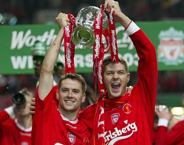 Owen và Steven Gerrard thời còn cùng nhau khoác áo Liverpool. Ảnh: Getty Images.