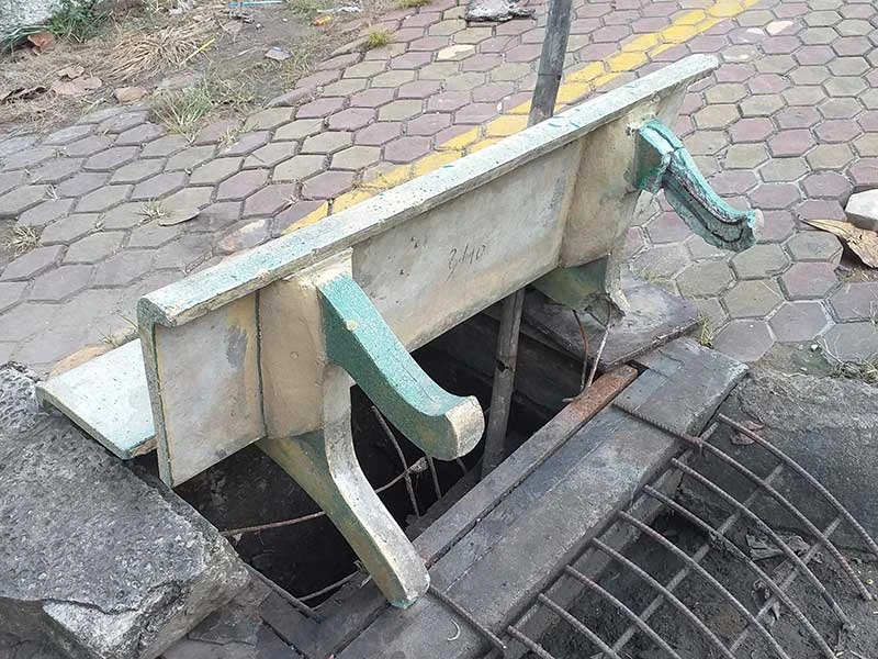 Để đảm bảo an toàn cho người qua lại, người dân nơi đây đã đậy lại bằng một chiếc ghế đá gãy chân, nhìn rất mất mỹ quan.