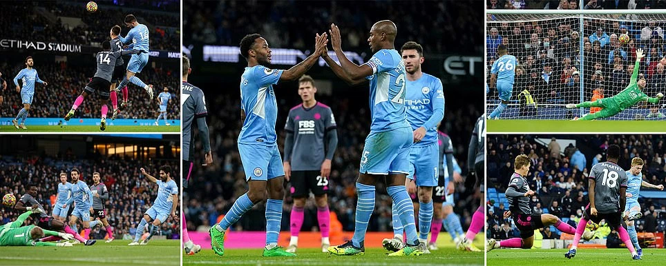 Man City và Leicester đã tạo nên màn rượt đuổi tỉ số hấp dẫn. ẢNH: DAILY MAIL