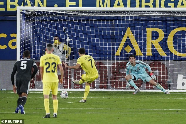 Phút 75, thủ môn Courtois phạm lỗi với Pervis Estupinan trong vòng cấm và trọng tài chỉ tay vào chấm 11m. Phút 76, Gerard Moreno thực hiện quả phạt đền chính xác ghi bàn gỡ hòa 1-1 cho Villarreal.