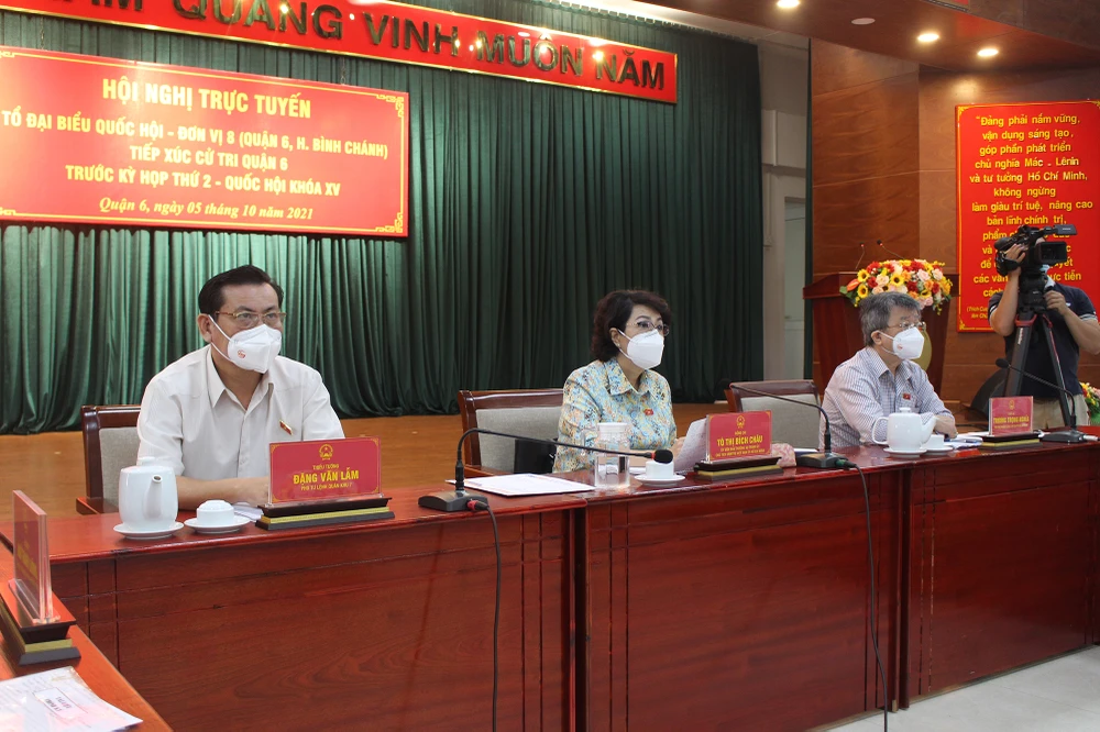 Sáng 5-10, các đại biểu Quốc hội TP.HCM đơn vị số 8 (quận 6, huyện Bình Chánh) đã có cuộc họp trực tuyến tiếp xúc cử tri quận 6 trước kỳ họp thứ 2 Quốc hội khoá XV.