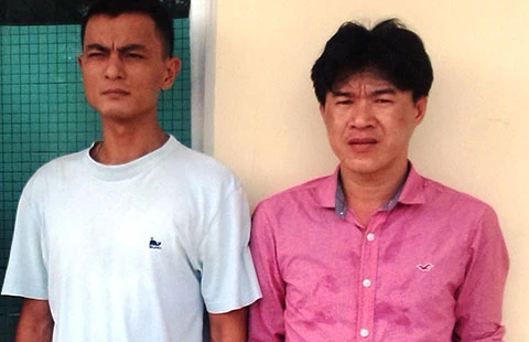 Hoàng Anh, Thoại Phong - hai nghi can cưỡng đoạt tài sản đang bị Công an quận 7 tạm giữ. Ảnh: HT