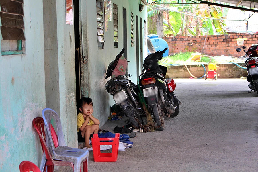 Dù có con nhỏ, chị L, tiểu thương vẫn phải chuyển sang thuê phòng trọ ọp ẹp để giảm chi phí hằng tháng. Ảnh: NGỌC LÀI