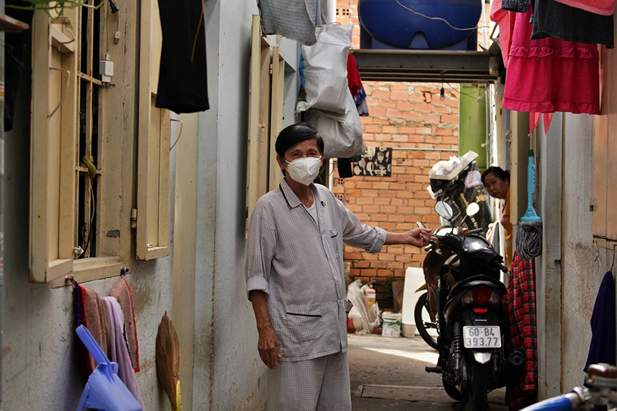 Ông Lê Tuấn Giảng, một chủ nhà trọ tốt bụng ở phường Tân Tạo, quận Bình Tân, TP.HCM, giảm tiền trọ cho người lao động trong thời buổi giá cả leo thang. Ảnh: NGỌC LÀI