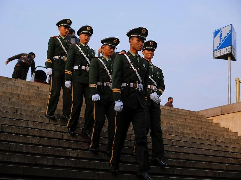 Lực lượng cảnh sát bán quân sự Trung Quốc đi tuần tra. Ảnh: REUTERS