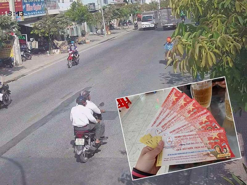 Trên địa bàn phường Trường Thọ, quận Thủ Đức, TP.HCM vừa xuất hiện hai nam thanh niên đi xe Honda Air Blade mời, đe dọa người dân mua vé xem ca nhạc dỏm với giá 200.000 đồng/vé. Đã có một hộ dân bị ép mua bảy vé với giá 1,4 triệu đồng. Công an phường đang xác minh, điều tra các đối tượng này và đưa ra lời khuyên cảnh báo với người dân.