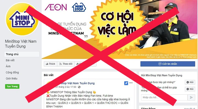 Trang Facebook giả danh với tên Ministop Việt Nam tuyển dụng. Ảnh: TRÚC PHƯƠNG