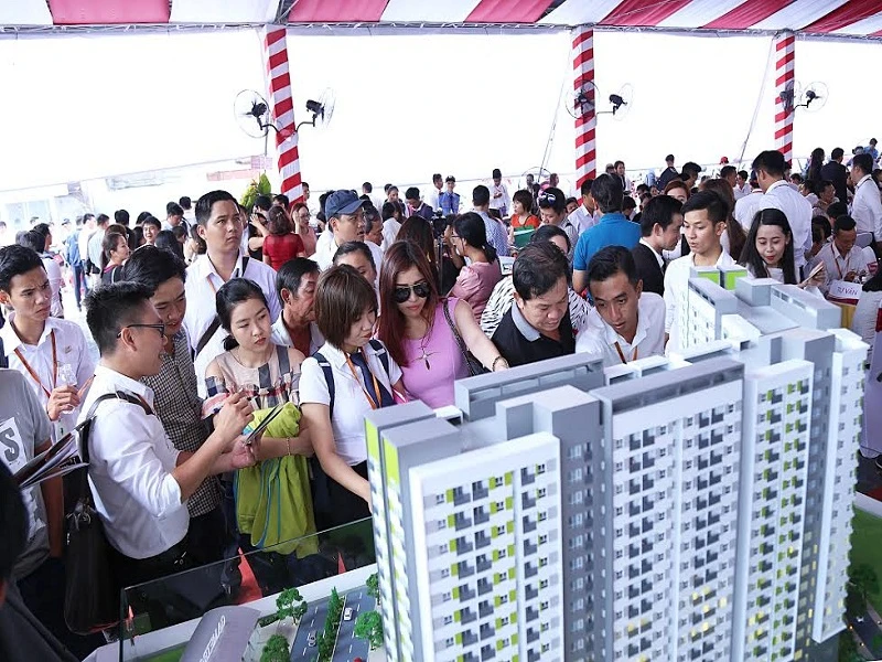 Khách hàng chen chân xem giới thiệu nhà mẫu tại dự án Moonlight Boulevard