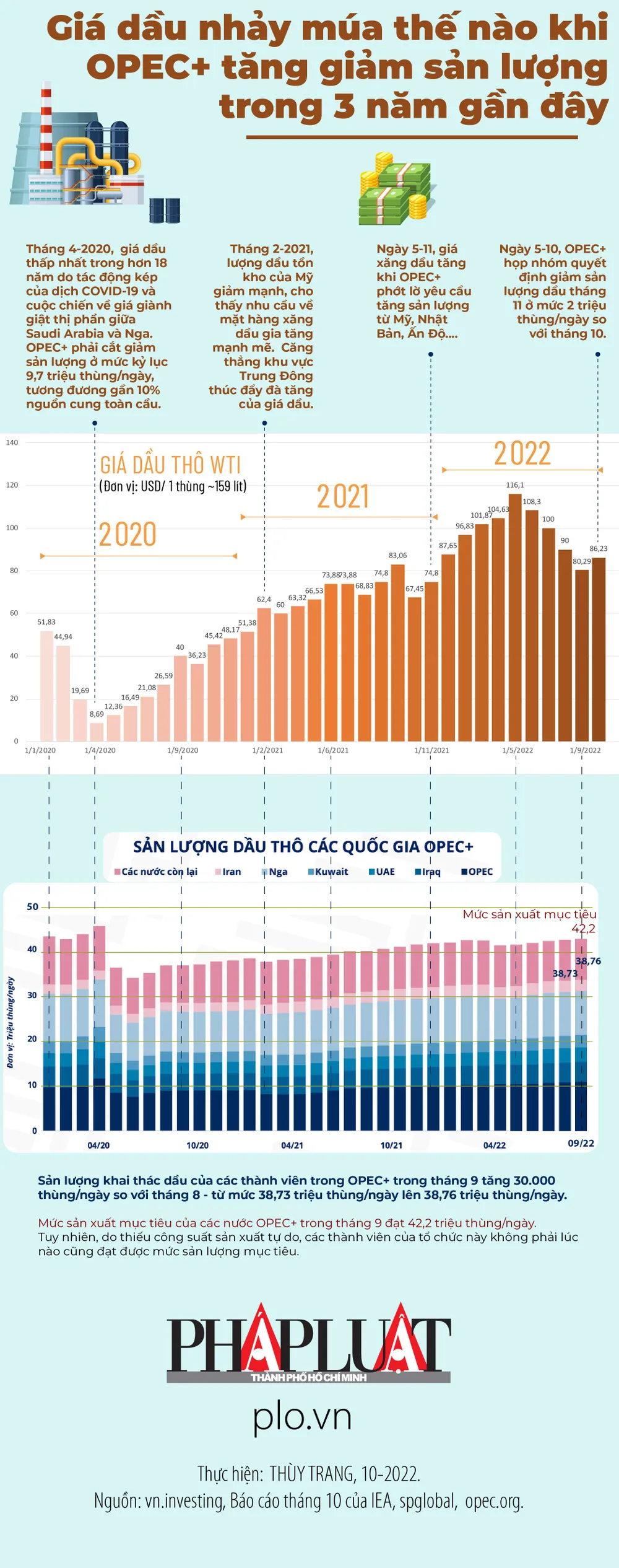 (PLO)- Ba năm gần đây, mỗi khi OPEC+ tăng giảm sản lượng đều khiến giá dầu nhảy múa.