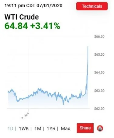 Vào đầu tuần nay, giá dầu thô có vẻ đã giảm nhẹ, các nhà đầu tư lúc đó hy vọng nguồn cung cấp năng lượng sẽ không bị ảnh hưởng. Tuy nhiên, đến ngày 7-1, giá dầu thô đã bất ngờ tăng mạnh, trái với kỳ vọng của giới đầu tư.