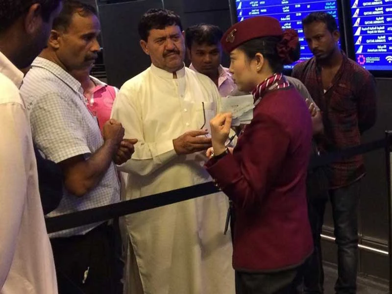 Hành khách bị kẹt lại sân bay quốc tế Hamad tại Doha, Qatar vì nhiều hãng bay vùng Vịnh tuyên bố đóng băng tuyến bay. Ảnh: AP