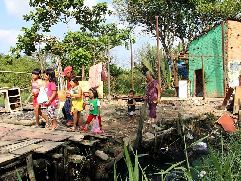 Trong sáng 23-3, nhiều hàng xóm đã rất vui mừng khi thấy bà Dung dắt díu bọn trẻ rời căn nhà ngay sát dòng kênh đen. Họ hỏi han, động viên bà Dung. Có người chạy qua phụ giúp một tay. Anh Trương Bảo Toàn, một người hàng xóm, đã qua giúp gia đình bà Dung chuyển đồ đạc: “Tôi đi làm bảo vệ, nay xin nghỉ để giúp dì Dung. Thấy mấy đứa nhỏ được ăn ở đàng hoàng như người ta cũng mừng. Chớ trước giờ tụi nó tắm kênh nước bẩn, ở tạm bợ vầy tội quá”.