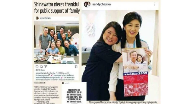 Theo The Nation, Pintongta và Peathongtarn, hai con gái của cựu Thủ tướng Thaksin, hôm 27-8 đã có những bình luận đầu tiên trên mạng xã hội kể từ sau khi người cô Yingluck bỏ trốn.