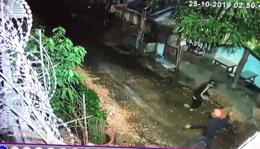 Hình ảnh từ camera an ninh của gia đình cho thấy thủ phạm là hai thanh niên trẻ tuổi. Cả hai dừng xe máy ở quốc lộ 1A, chạy bộ vào ném các bịch sơn, gạch đá rồi bỏ chạy. Sự việc diễn ra trong chưa đầy 1 phút.