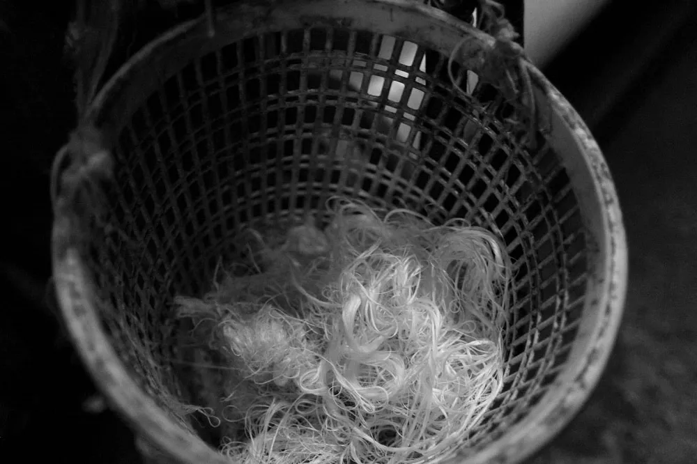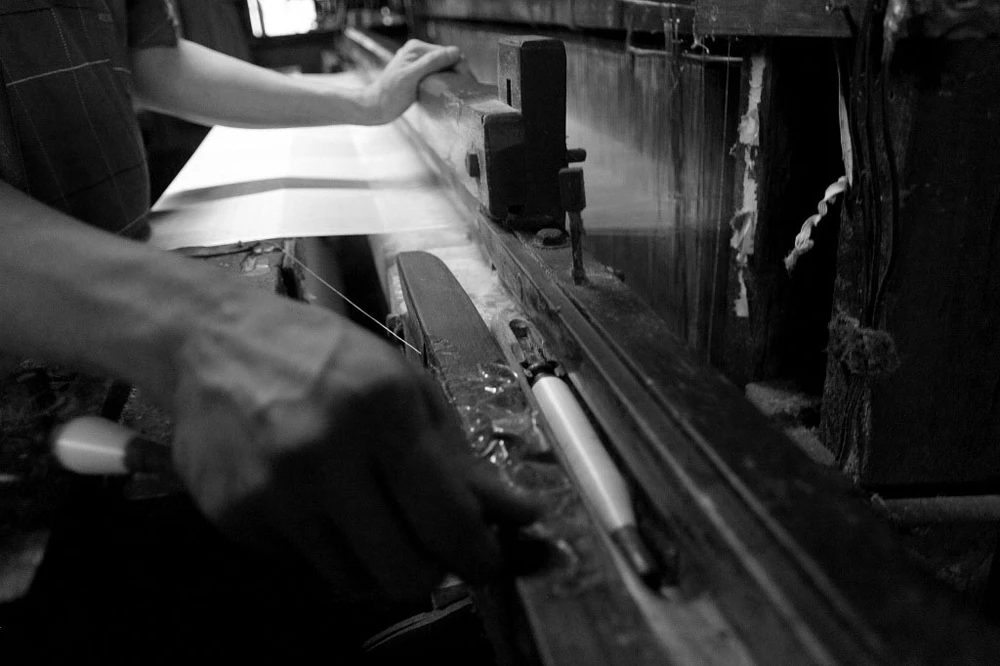 Đây là công đoạn đầu tiên trong việc sản xuất vải bằng máy dệt gỗ.
